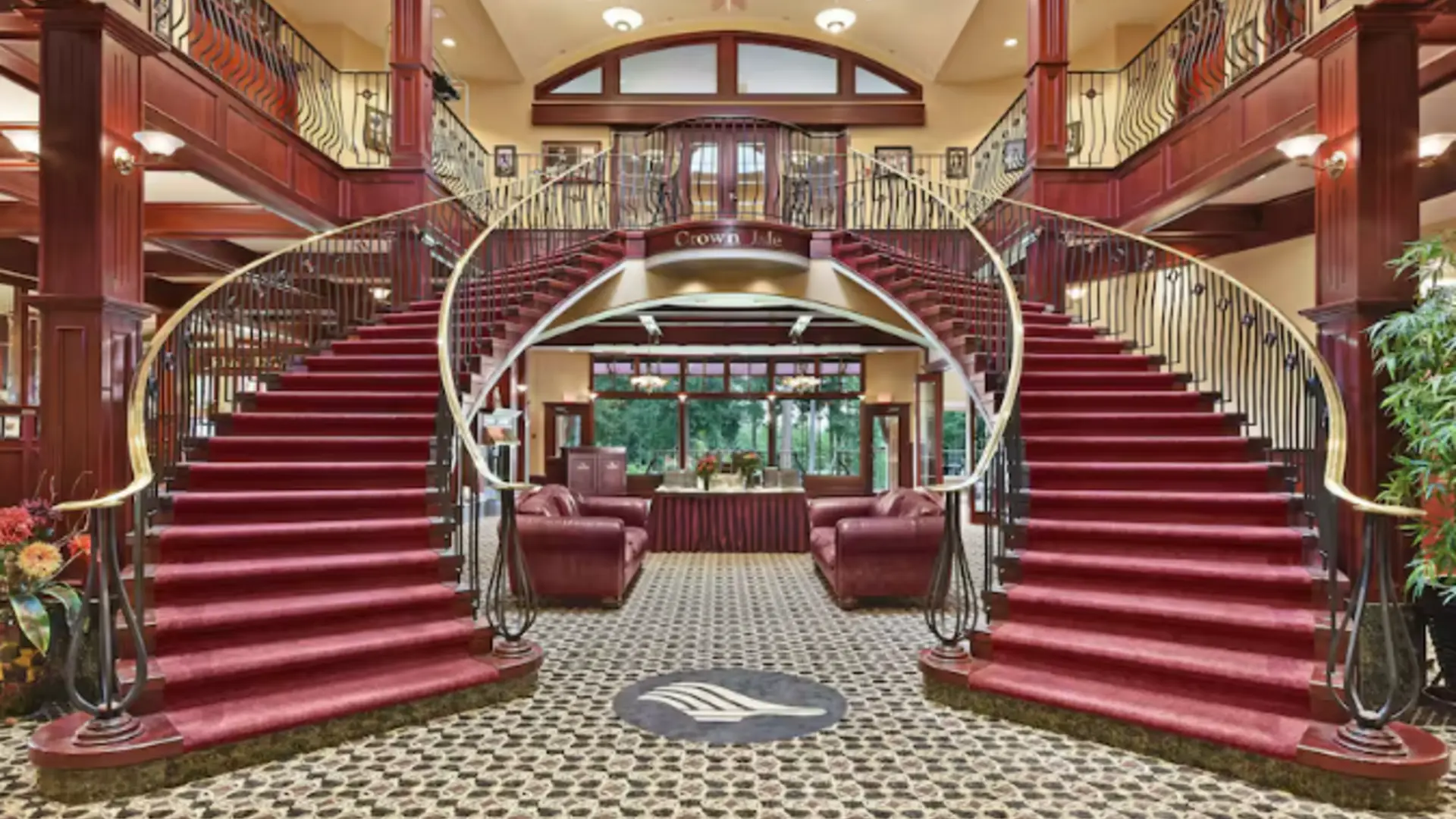 Each guest room at Crown Isle Resort & Golf Community features a comfortable seating area or living room with a television. The spacious accommodations are elegantly designed with gold accents and rich cherry wood furnishings, and most rooms include a full kitchen or kitchenette for added convenience.